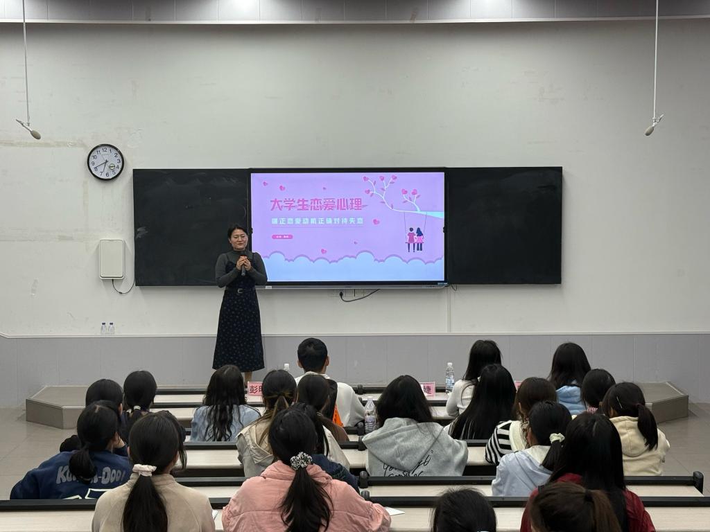12月17日下午,我院于我校东校区格物楼物理阶梯教室举办大学生恋爱心理讲座,本次讲座由我院辅导员葵婕主讲,全体心理委员及宿舍联络员共同参与。